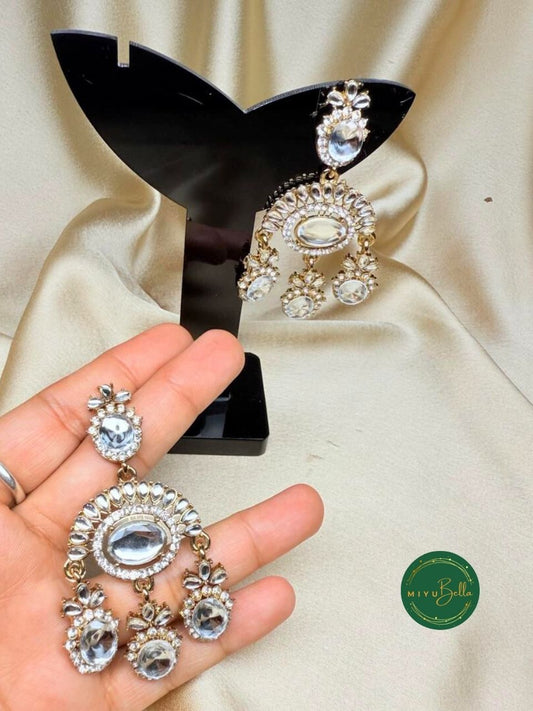 Ruhani - White and Green Kundan Meenakari Chandelier Earrings