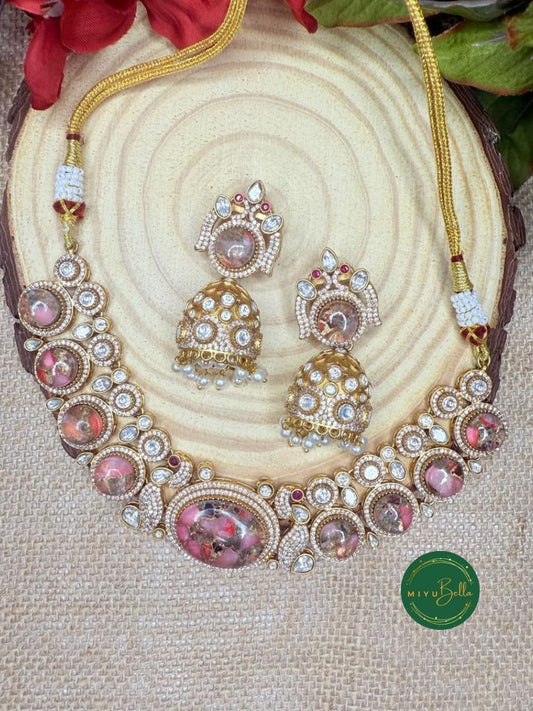 Aadhya: Dazzling Moissanite Polki and CZ Diamonds Jewellery Set