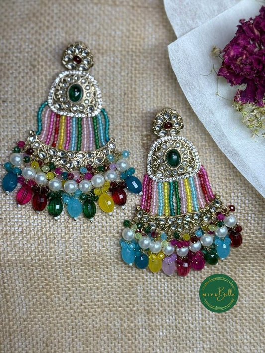 Sania Collection - Multicolor Kundan Dangler Earrings
