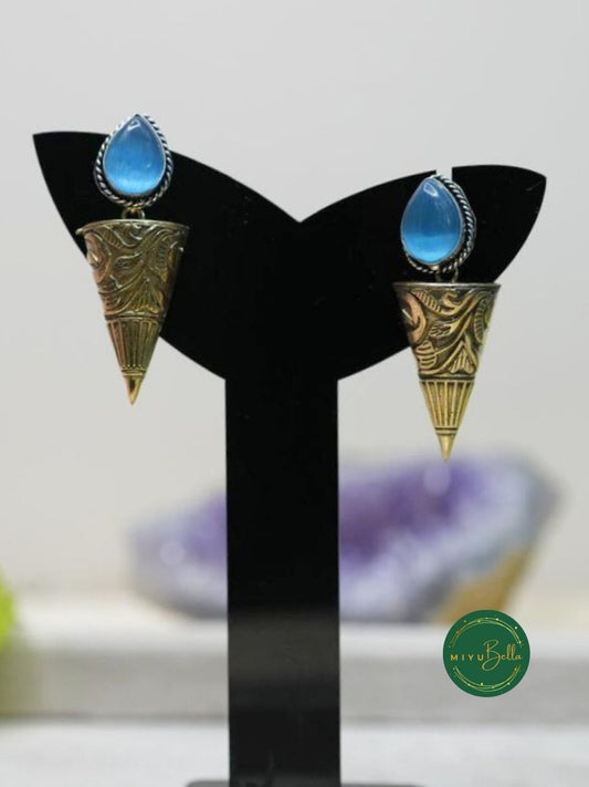 Garima – Sky Blue Stone Drop Earrings in Dual Tone Antique Finish